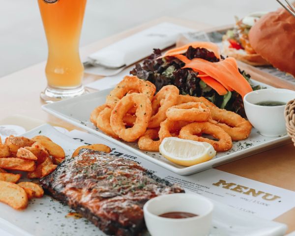 Our menu offers something for every palate: from grilled specialties and wood-fired pizzas to Mediterranean favorites and light bites — all best enjoyed with a wide selection of local and international beers and a stunning view of Bečići Beach and Bay.