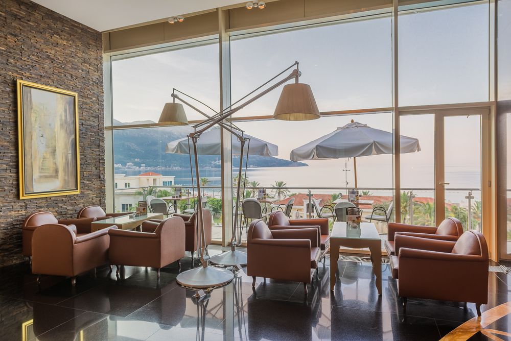 This spacious bar is located on the fourth floor close to reception and the main entrance to the hotel. Here you can enjoy coffee and snacks with your friends or business partners. The luxurious interior and glamorous atmosphere are enhanced by the fantastic view of Bečići Bay.